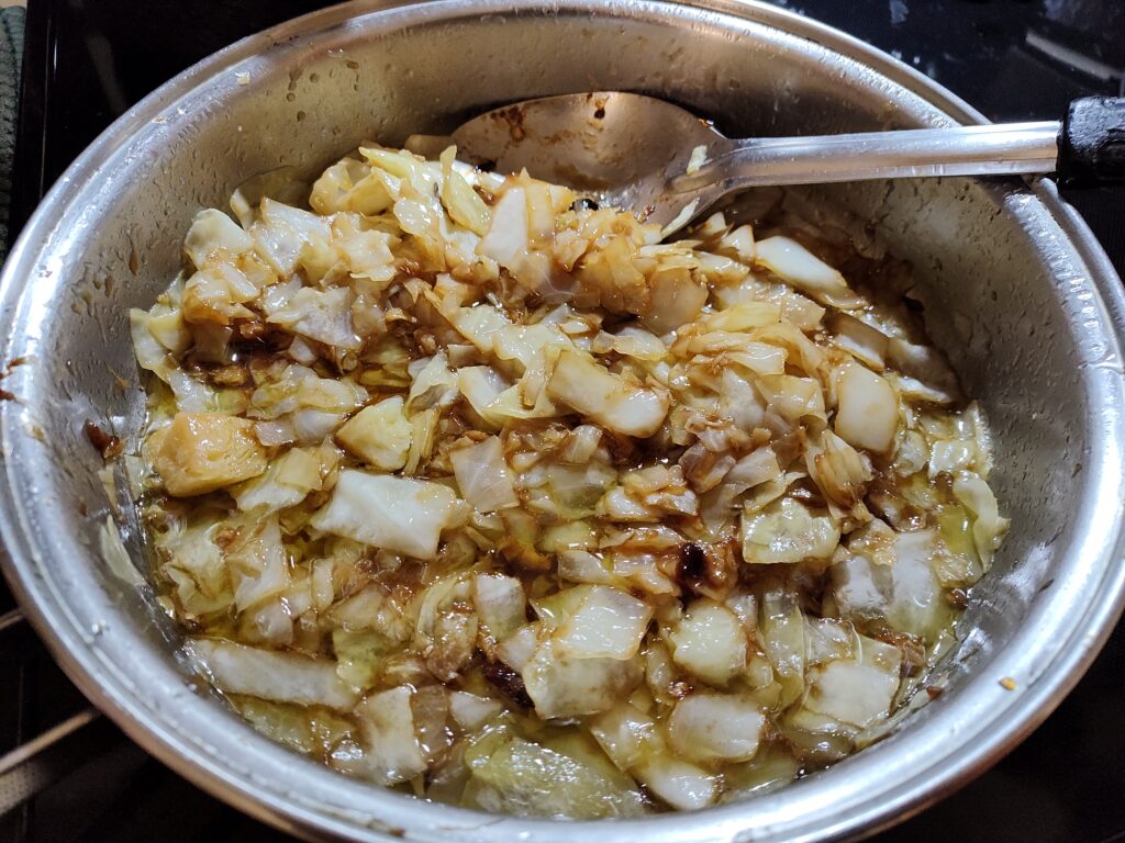 Among some of us afficionados, cabbage is a mainstay, tasty, healthy and easy to prepare.  There’s so much you can do with it: Cabbage Soup, Stuffed Cabbage; I even I had a post on 06/19/20 offering Cabbage with Sour Cream. But my favorite way to prepare it has been a simple Cabbage Stir-Fry. The beauty of this dish is that you can make it either spicy or not so spicy, your choice. As given in the recipe below, you can add seeded dry red chili peppers. Or you can use sweet peppers, what we call aji dulce, and which you can find in Asian or Caribbean food stores (like your local bodega), or even in some supermarkets. They are sold by the handful or in packets of ½ to ¾ pound. A ¾ packet contains about 28 peppers. If you can’t find aji dulce, you can omit it and cook the dish as it. It will stay taste delicious.